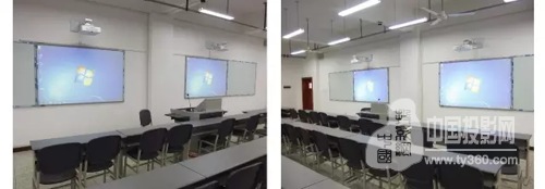 (2臺超短焦投影機,雙畫面投放,坐在角落的同學也能看清畫面)