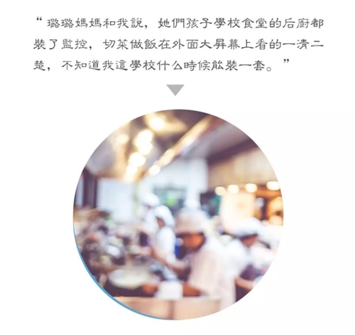 校園食品安全一直是家長非常關心的問題,而廚房易產生油煙、各環節需要溫濕度監控的特殊場景,一般的監控難以滿足要求。可通過在烹飪和切配專間使用具備可替換面罩的攝像機來解決蒸汽/油污導致的攝像機畫面模糊問題,在倉庫、原料清洗、餐具消毒專間使用可采集溫濕度信息的攝像機實現后廚環境監控。就餐區的屏幕除了播放后廚監控畫面外,還可以發布校園通知、安全教育宣傳等內容。