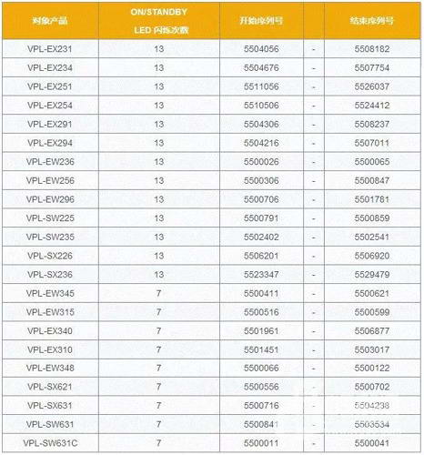 由于投影機(jī)軟件的問(wèn)題,部分的投影機(jī)產(chǎn)品在使用一定時(shí)間后,可能會(huì)發(fā)生無(wú)法開(kāi)機(jī)的問(wèn)題。為解決該問(wèn)題,索尼(中國(guó))有限公司將為您免費(fèi)的軟件升級(jí)服務(wù)。