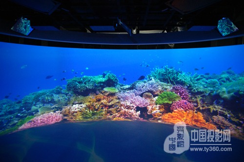 本次投入運營的“WARP超空間”展廳,是索尼中國專業(yè)系統(tǒng)集團娛樂解決方案業(yè)務(wù)的首發(fā)項目之一,也是索尼集團“One Sony”方針下的絕佳創(chuàng)意組合。此項目采用3臺VPL-GTZ270 4K激光工程投影機,投射出直徑8.2米高2.4米,弧度為150度的巨幅雙曲面畫面;以8K分辨率展示美輪美奐的南太平洋水下世界。