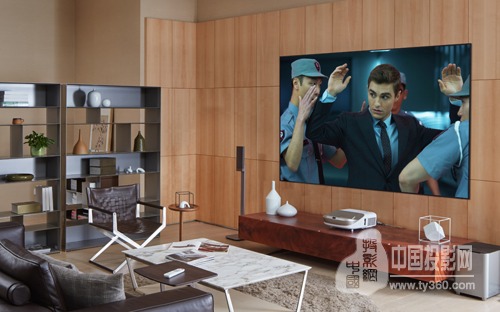 首先,明基智能超投電視滿足了徐先生對于客廳整潔度的要求。它由100吋巨幅大屏以及主機組成,100吋的大屏帶來非常好的感官享受,但厚度不足3cm,固定于墻面上比大部分LED背光電視都來得更薄,幾乎可以忽略它的厚度;而它的主機可以直接放置在電視柜上,連接WIFI即可,無需任何布線。