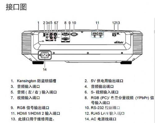 在接口方面,Vivitek(麗訊)DX761Z-UST也是應(yīng)有盡有,音視頻端口、HDMI端口、S-視頻輸入端口、RS-232端口、RJ45 LAN輸入端口等等,日常所需全部覆蓋。
