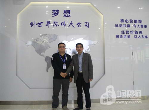 強(qiáng)力巨彩總經(jīng)理徐慧能先生與創(chuàng)聯(lián)電源董事長(zhǎng)唐景新先生合影