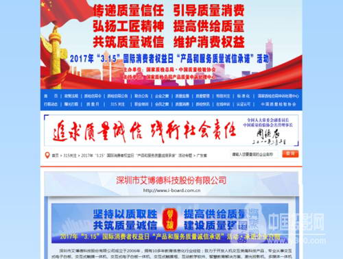 責任匯聚誠信,質量保障消費。由國家質檢總局主管的中國質量檢驗協(xié)會組織2000多家全國質量誠信優(yōu)秀典范企業(yè)在2017年“3.15”開展“產(chǎn)品和服務質量誠信承諾”活動,為促進我國從制造大國向制造強國邁下了堅實一步。作為此次活動其中重要一員的艾博德股份長期以來堅持創(chuàng)新驅動、品質為先的發(fā)展理念,協(xié)同眾多優(yōu)秀企業(yè)一起做出莊重承諾,唱響時代質量強音。