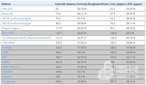 圖3 Focused Scene Text識別評測結(jié)果顯示HIK_OCR排名第一
