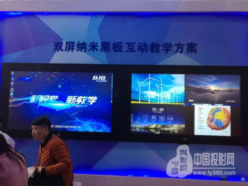 繼去年展會(huì)上BJB納米黑板亮相之后,今年展會(huì)上同輝在此基礎(chǔ)了推出雙屏納米黑板互動(dòng)教學(xué)方案,雙屏互動(dòng),移動(dòng)教學(xué),在屏?xí)弦l(fā)了新一輪的關(guān)注熱潮。