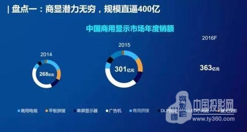 首先我們回顧下2014到2016的商用顯示市場的規模,唯有通古方能明今,以上數據總的來說只增不減,增長率接近百分之二十,不要小看這個增長率,它將足以說明后期的潛在市場。