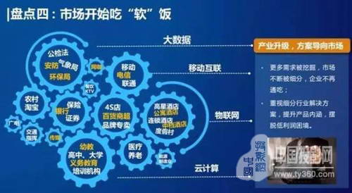 接下來我們看一下商顯產品在各個行業領域的風騷走向,從左到右,我們看到最高的當屬教育行業,教育行業主要教育信息拉動,在市場中商顯拼接占有88%的份額,其次是政府與公告的管理,期間包括APP項目的拉動有關聯占市場的百分之二十六。之后是商業零售的百分比,像在4S店的應用也是極大拉動了商業零售的需求增長,從各個領域整合來看屏幕通吃各行各業。