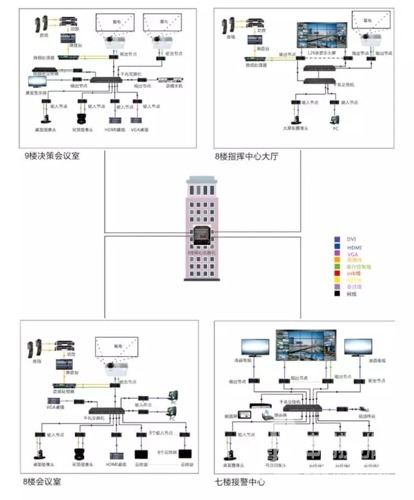 在面對重大、敏感類案件,可將八樓指揮中心屏幕上的信息直接推送至九樓的決策會議室,通過輸入 / 出節點,將信息顯示在幕布或電腦桌面,使領導干部能及時召開應急處理會議,及時的實現決策與情報的上傳下達。