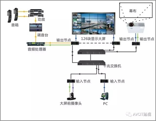 系統需滿足所有音視頻信號在各區域內進行傳輸、切換、顯示,使得各區域互聯互通并將所需的信息處理集中顯示在126個屏幕上;