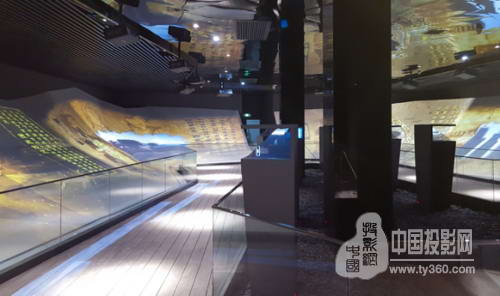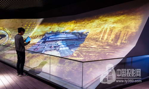 整個回廊總計使用22臺視美樂激光工程機(SML—PX601),盡管拼接屏有很多菱形折面的造型,但準確的機位架設與細心的調試達到了“量體裁衣”的效果,完美再現周都豐鎬、秦咸陽城、秦阿房宮、漢長安城遺址、西漢帝陵等中國古代農業文明時期最輝煌的都城、宮殿遺址及帝王陵墓等歷史變遷。