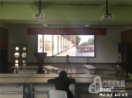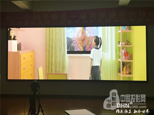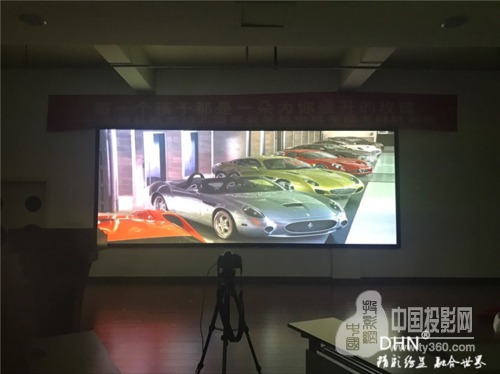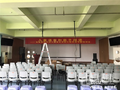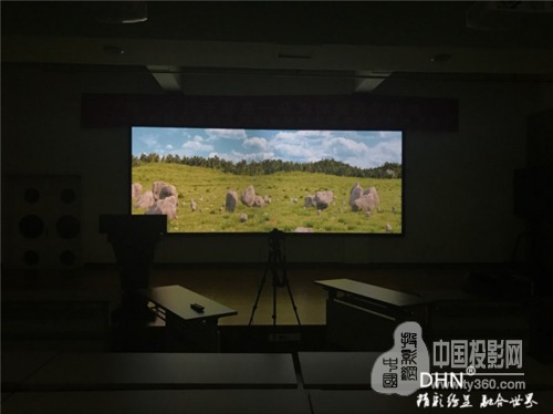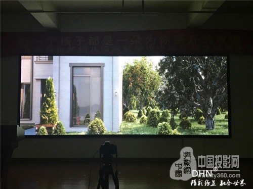 多功能報告廳使用的是平面金屬硬幕,是DHN為幼兒園量身定做的尺寸,然后運到現場進行組裝,DHN金屬硬幕采用高清樹脂材質,具有成像效果好,使用壽命長的優點。根據選擇的工程投影機和硬件融合的融合帶大小最終確定尺寸為5.23*2.1米。