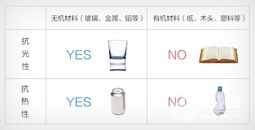 有機和無機材料抗光性與抗熱性的對比