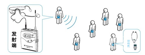 根據(jù)設備傳輸原理,現(xiàn)階段語音導覽系統(tǒng)可通過2.4G或U段兩種無線射頻技術進行信號傳輸。會場人員只要攜帶語音接收機,即可收聽語音信息,系統(tǒng)構成簡單,操作方便。市面上的語音導覽系統(tǒng)多為單通道信號傳輸,通過特制也可以實現(xiàn)多通道語音傳輸。但由于其技術本質只能一個頻點傳輸一路音頻,因此如果要實現(xiàn)多路語音輸出,就要占用多個頻點,使用過程中,頻點為固定設置,若遇到干擾無法及時調整。另一方面由于導覽系統(tǒng)的發(fā)射距離有限,一旦會場較大,需要通過配備多個天線擴展器擴大覆蓋范圍。