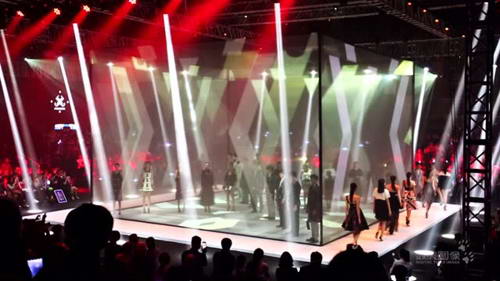 這場秀名為“極光之夜”,由數虎圖像設計團隊在17天制作周期、3天入場聯調的情況下,制作完成。結合本次活動“穿越時尚生活”的主題,在秀場舞臺上融入裸眼3D倒計時、時尚品牌LOGO、多面紗幕投影、真人影像互動、全息效果等,讓普通紗幕和地面組成的一個立方體變身時尚秀場的主陣地,創意和視覺感滿滿。