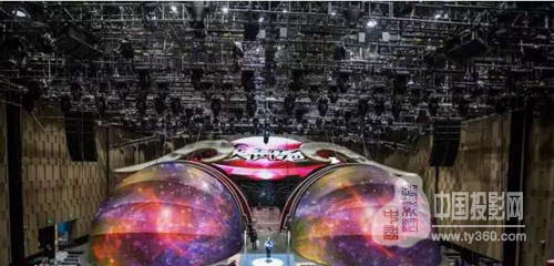 原來,兩個動態的“半球”,是由4臺愛普生工程投影機CB-L23000U共同打造的。4臺機器兩兩疊加,吊裝在舞臺上方。
