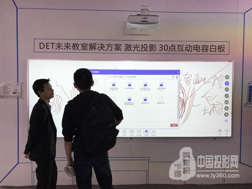 在教育領(lǐng)域方面,DET則亮出兩套不同的教學(xué)解決方案:科教一體機直投墻面觸寫、30點觸控互動電容白板組成未來教室。
