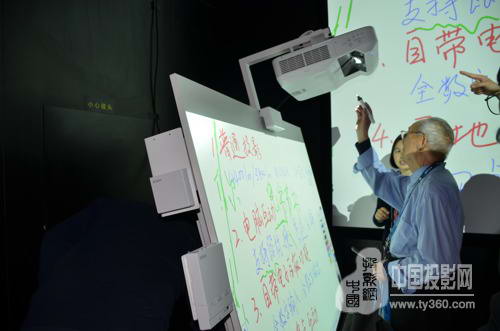 超寬屏高清互動教學(xué)方案是愛普生這次展會的另一款解決方案重頭戲,其由愛普生高清超短焦互動投影機(jī)CB-696Ui+教學(xué)軟件+普通白板,創(chuàng)新實(shí)現(xiàn)一站式會議和教學(xué)功能。愛普生高清超短焦互動投影機(jī)CB-696Ui擁有3800流明亮度,明亮環(huán)境下也能保證觀看效果,高清畫質(zhì)1920*1200(WUXGA)分辨率,并可以實(shí)現(xiàn)8點(diǎn)互動,6點(diǎn)手指+2點(diǎn)筆互動,點(diǎn)位精準(zhǔn),自動校準(zhǔn),操作靈活簡便。