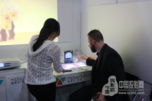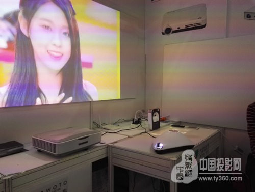 在晶源動力展示的眾多產(chǎn)品中,最受青睞的莫過于一款智能互動投影儀。這款由晶源動力精心打造的產(chǎn)品,是一款超短焦微型投影儀,具有0.39的超低投射比,即39厘米就可以投射出寬1米,高60厘米的畫面,250流明的亮度,而且擁有windows10系統(tǒng)和安卓系統(tǒng)兩個版本。這次在2017年香港春季電子展上,晶源動力用這臺超短焦投影儀組建的互動投影方案,吸引了不少的參觀者,可以在投影畫面上玩互動游戲(如水果忍者游戲等),給PPT做批注等。不過,與索尼前段時間推出的黑科技觸控投影相比,晶源動力的這款產(chǎn)品需要專用筆進(jìn)行觸控,不能用手直接觸控。