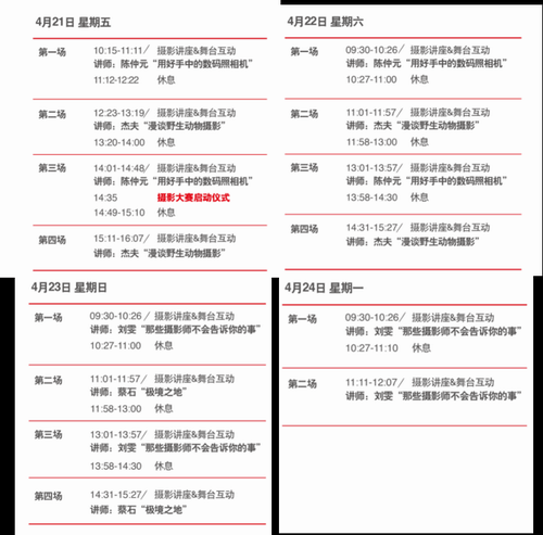 除了過癮的產(chǎn)品體驗外,佳能展臺也將為觀眾們設(shè)置多種精彩環(huán)節(jié),并將不停歇地進行呈現(xiàn)。著名攝影師陳仲元、杰夫等4位攝影大咖帶來的攝影講座是提升攝影水平的好機會,聽完講座后還可以在現(xiàn)場進行試拍。此外,觀眾可以在展臺為自己的佳能相機和鏡頭進行免費的外觀清潔。五一假期臨近,如果小伙伴們正有購買相機出游的計劃,不妨來佳能展臺的銷售區(qū)看看。