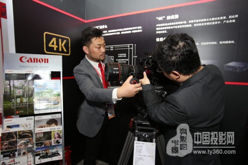 視頻拍攝體驗也是佳能展臺的一大亮點。在專業4K視頻展示區,展出了EOS電影系統以及佳能4K投影機等產品。