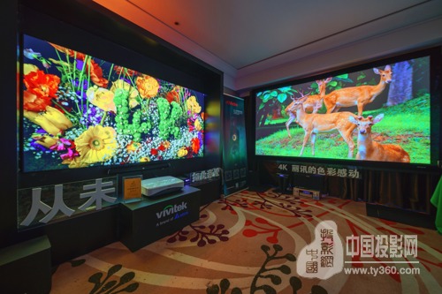 除了Vivitek(麗訊)家用投影機產品,本次網庭企業機構還帶來了時下最熱門的“客廳影院”以及“類影吧”的概念,“客廳影院”是指在客廳這個獨特的場景下營造出“影院”的氛圍,同時又不影響客廳的獨立功能,針對不同家居環境,客戶可以選用小投距產生大畫面的Vivitek(麗訊)短焦全高清家用投影機DH559ST,對品質有著更高要求的客戶,可選用HIFI級準高端家庭影院投影機H5095享受視覺盛宴;“類影吧”則是以甲譜品牌為主的專業影吧硬件整套解決方案,如Vivitek(麗訊)針對影吧市場開發的機型DH558,配合甲譜8盤位標準版服務器、甲譜高清播放器、甲譜影吧運營管理系統等組成。