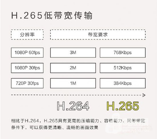 采用H.265編解碼技術后,在現有帶寬情況下,能為會議提供更為細膩的圖像和更加流暢的視頻效果;在會議的過程中,時延更低,增加參會人員的臨場感;在網絡質量低下時,系統具備更好的容錯能力,保證會議質量;此外,采用H.265編解碼技術,也為未來系統升級4K超高清分辨率提供基礎。