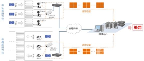 方案系統(tǒng)采用純視頻檢測的方式,自動對視頻流中運動物體進行實時逐幀檢測、鎖定與跟蹤。系統(tǒng)分為路口采集、網(wǎng)絡(luò)傳輸和中心管理三大部分,前端運用700萬CCD高清一體化攝像機為采集主體,單臺攝像機覆蓋單向3車道,同步LED頻閃燈進行夜間補光,以保證日夜不間斷的監(jiān)控、取證。