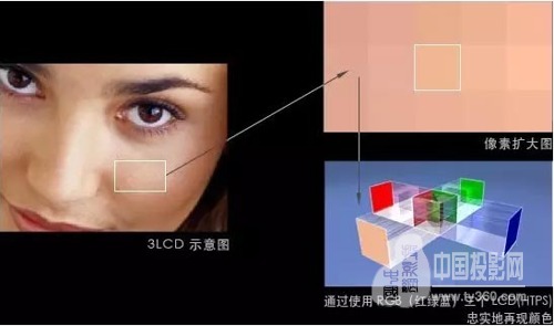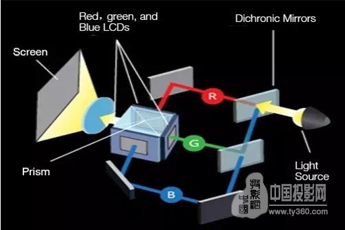 3LCD是“3片高溫多晶硅液晶面板”的縮寫。光源產生的白光被投射到一組分光鏡上,分解為基本的紅、綠、藍三色,每片3LCD面板接收信號,并且顯示圖象;這3個單色圖象通過棱鏡合成全彩色圖象,也就是我們最終看到的生動全彩的圖象。