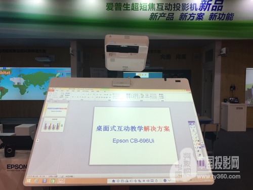 在展會現場,愛普生全新展示的教學方案獲得眾多人士的認可,“屏幕真大”、“觸屏好方便”等這樣的稱贊不絕于耳。由愛普生投影機打造的高清超短焦雙屏互動教學方案,采用了2臺CB-696Ui超短焦互動投影機,通過其內置的弧形校正功能,可以無縫拼接出超大屏幕;同時支持6點手指、2點互動電子筆同步觸控,能在畫面上隨心所欲地書寫、批注、互動,為展會觀眾帶來超寬屏的互動體驗。
