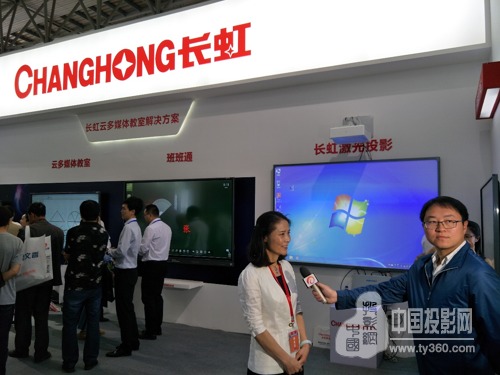 (云南省教育廳教學(xué)儀器裝備中心主任李潤在長虹展位接受云南電視臺采訪)