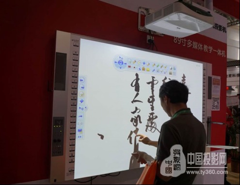 艾博德股份作為這個行業(yè)的十年經驗“老手”,誠意地帶上了我們的最新款觸摸一體機、明星款多媒體一體機、經典款激光投影機等產品亮相本次展會,特別是89寸電容多媒體教學一體機與超短焦激光投影機組合構建成一套全新的顯示方案,吸引了眾多參觀者的到場體驗。激光投影機以其更好的顯示效果、更高的亮度、更低的產品維護成本和終身沒有耗材等優(yōu)勢逐漸贏得用戶青睞,同時多媒體一體機與自主研發(fā)的Draw View白板軟件配合使用,三者結合吸引了一位“書法大家”的到場一展身手,這是對我們產品最直觀的認可。
