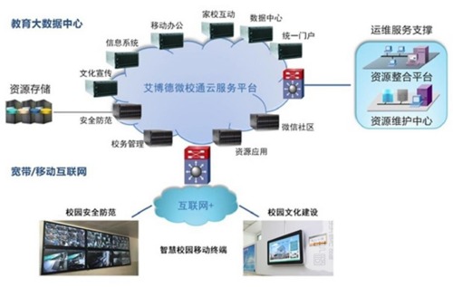 近幾年,深圳市艾博德科技股份有限公司基于對基礎教育行業的理解和多年成功技術的積累,針對移動“互聯網+”的創新技術而提出智慧校園整體解決方案。主要基于阿里云平臺管理系統為支撐的跨平臺,運用微信企業號接口為門戶,利用物聯網技術優化校園環境。將學校中教學內容、教學方式和教學策略。以學生智慧發展為價值追求,以教師的教學智慧為根本條件。