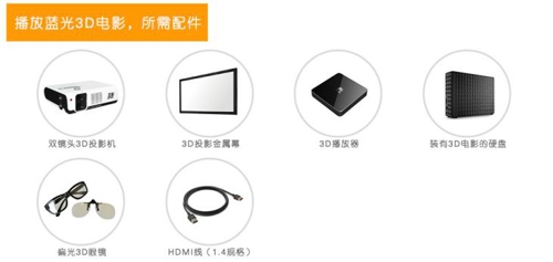 注:觀看偏光3D效果,需要偏光3D投影機(jī),3D金屬幕,3D眼鏡,3D播放器,3D硬盤,其中缺少一件產(chǎn)品都會(huì)導(dǎo)致觀看不了3D。