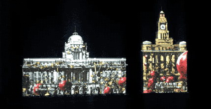 ↑ 作品《涅槃》,由2臺(tái)光峰激光工程機(jī)融合顯示