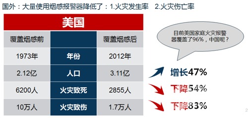 針對(duì)高層建筑的消防問題,國(guó)際上的做法是采用獨(dú)立式煙感進(jìn)行火災(zāi)報(bào)警。相比歐洲和美國(guó),德國(guó)和法國(guó)是強(qiáng)制安裝獨(dú)立式煙感,美國(guó)是通過大規(guī)模推廣獨(dú)立式煙感才大大降低火災(zāi)傷亡。