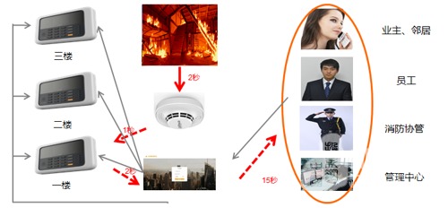 煙感感應(yīng)到煙霧到報(bào)警需要2秒的時(shí)間。煙感用1秒鐘時(shí)間通過無線信號(hào)將報(bào)警信號(hào)傳輸給樓層的主機(jī)終端。