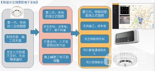 整套方案由智能無線獨(dú)立式煙感、智能火災(zāi)預(yù)警主機(jī)以及后端的智能火災(zāi)預(yù)警平臺(tái)組成。
