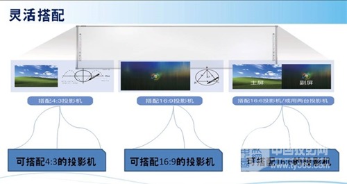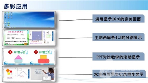 當老師想實現在同一屏中進行PPT的滾動播放(一邊播放PPT上一頁,另一邊播放PPT下一頁),達到對比教學的更好效果,而傳統的觸摸屏和電子白又無能為力時,我們該怎么辦?當老師想實現在電子白板上進行觸摸交互,又能用水性筆書寫批注,還能同步記錄下水性筆板書的內容時,我們又該怎么辦?"科技就是生產力","創新就會出奇跡"。東方中原不負廣大師生的重望,在以創造最好最實用的教學設備回饋教育為使命,以創新為靈感、實用為基礎的研發理念下,振撼上市"145"雙通道超寬屏白板+16:6的激光投影機的未來教室解決方案"。同時又完美結合教學一體機高集成、易操作、便安裝的優勢,升級推出"153"雙道道超寬屏教學一體機+16:6的激光投影機未來教室解決方案",并如期亮相今年福州的普教展。