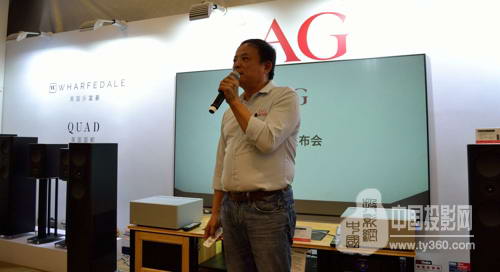 在發布會現場中,先歌國際影音(IAG)中國區銷售總監楊敏先生先就IAG(先歌)的歷程、實力規模、發展情況、合作模式、新品研發的方向等內容,向與會的媒體嘉賓進行了介紹和說明。