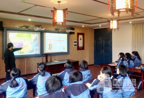 如果說(shuō)獨(dú)具人文氣息的氛圍是“數(shù)字化歷史教室”的“表”,那么“數(shù)字化”則是其“里”。教室正前方懸掛數(shù)字化歷史立體地形,采用先進(jìn)的投影技術(shù),可將立體地形圖配合多媒體動(dòng)畫課件使用,從時(shí)間和空間上更加清晰地呈現(xiàn)歷史事件。而在教室的后面,數(shù)字歷史沿革系統(tǒng)和數(shù)字歷史模型的使用,讓歷史變得更加“立體”。通過先進(jìn)的3D全息影像技術(shù),將歷史文物更加逼真生動(dòng)的呈現(xiàn)在學(xué)生面前,使得歷史教學(xué)更加栩栩如生。