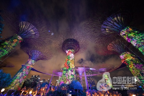Hexogon Solution集團(tuán)執(zhí)行董事兼藝術(shù)總監(jiān)吳錦嵩說:“我們很榮幸能與濱海灣公園合作,為五周年慶典推出這樣吸引眾人眼球的視覺表演。我們?cè)诎丝们嫣鞓涞摹畼涓伞喜渴?2臺(tái)Roadster HD20K-J投影機(jī)進(jìn)行投影映射,希望營(yíng)造世界一流的投影映射燈光秀,喜迎參加此次慶典的本地和國(guó)外游客。”