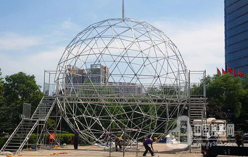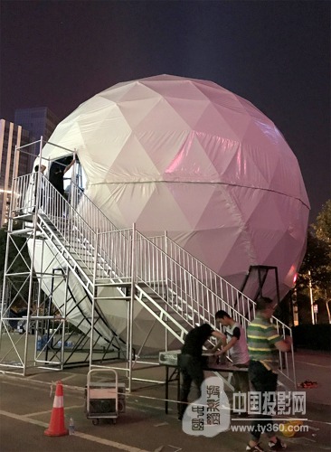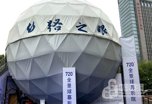 開幕前夕,西安綠地筆克國際會展中心建起一個全景球幕影院,名為“絲路之眼”。它是目前國內唯一的720度全景球幕影院,作為2017年絲博會的特色展示項目之一,承載著迎接參會嘉賓、展示會議主題與國家形象的重任。