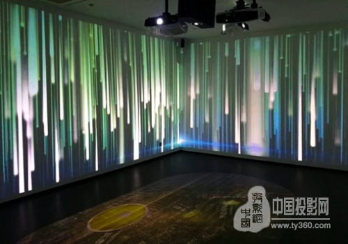 三面環(huán)繞投影+地面沙盤共使用7臺視美樂激光工程機(5000-6500流明),全圍合視角營造沉浸觀影體驗,配合4.5*2.5米地面沙盤與周圍的三面幕墻打造出一個6.5*5.5米栩栩如生的虛擬空間。當(dāng)音效配合著草木生長的光影,仿佛身處森林之中能深切感受到自然的力量。