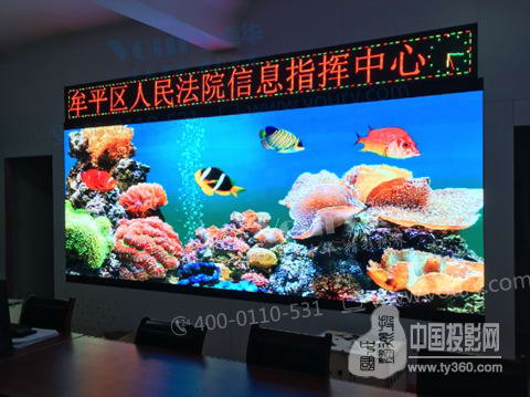 山東省煙臺市牟平區人民法院執行指揮中心大屏幕落成,采用Voury卓華微間距黑晶王P1.6系列顯示屏,長度4.4米,顯示高度1.8米,顯示面積為7.92㎡。