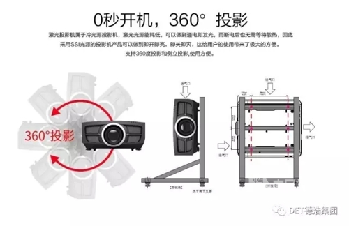 投影機(jī)在教育行業(yè)、多媒體行業(yè)等比重依然很高,在各種各樣的工程項(xiàng)目中環(huán)境比較苛刻,又要求新穎創(chuàng)意表現(xiàn)形式,另外燈泡衰減太快等問(wèn)題也困擾著很多工程商與用戶。現(xiàn)在DET激光工程機(jī)產(chǎn)品非常輕松的解決了這些問(wèn)題。DET激光光源不像普通燈泡光源需要散熱及暖影及側(cè)立投影,在實(shí)際項(xiàng)目中能實(shí)現(xiàn)更多創(chuàng)意表現(xiàn)內(nèi)容。另外,DET激光工程投影機(jī)低能耗,噪音小,無(wú)輻射,維護(hù)成本低。