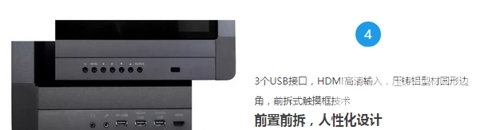 由于采用直下式背光模組,這款平板產(chǎn)品還具備節(jié)能環(huán)保,高清高亮,壽命長久的特點;采用真4K超高清顯示驅(qū)動板,可以實現(xiàn)真4k高清顯示;前置前拆式觸摸框技術,人性化設計,壓鑄鋁型材圓形邊角,設有3個USB接口,支持HDMI高清輸入;精準觸摸,無需用力點擊,可以更生動的讓用戶真正感受到人機交互。可以適就于會議室、展示廳、校園、場館……
