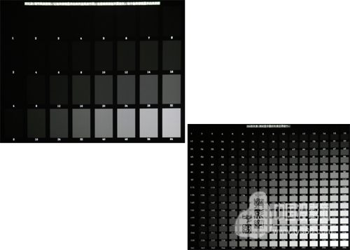 灰階對比度測試時,索諾克Sonnoc SNP-X3500C投影機(jī)在3300流明亮度下,投影出的灰階由暗到亮過渡自然,64位灰階、256位灰階都表現(xiàn)得很好,能清晰分辨,在256灰階塊中,只有最左邊兩列少數(shù)塊不能分辨,其余的都很清晰,每個色塊的對比還挺分明,表現(xiàn)真的很不錯(需要補(bǔ)充說明的是:所有的圖像顯示實際效果要比相機(jī)拍攝效果更好)。