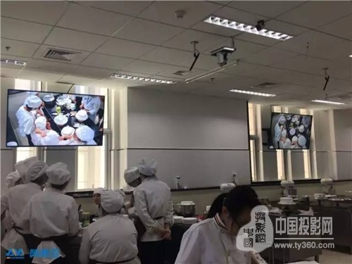 實訓基地主要供學生學習、訓練西點西餐制作技能使用。老師只需站在帶有奧威亞全高清云臺攝像機的工位上進行示范操作,學生們就可以通過課室里的高清大屏方便地觀看與學習,而不需要里三層外三層地圍著老師。這種做法,避免了傳統實訓中因場地、人數等限制因素而產生的教學質量下降的問題。