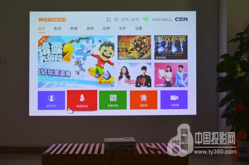 神畫大威支持1100流明高清高亮,經得起對比和考驗,白天拉開窗簾,晚上開燈觀看,畫面依然清晰,不論白天觀看還是開燈觀看,畫面清晰且絕對不泛白。同時,大威分辨率為1280*800,投影畫面